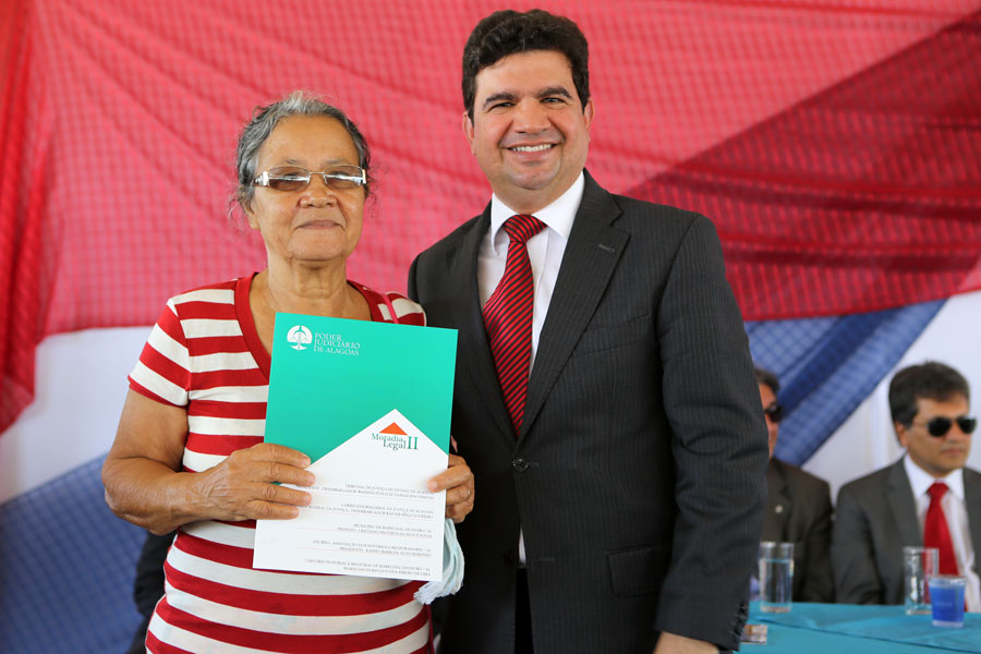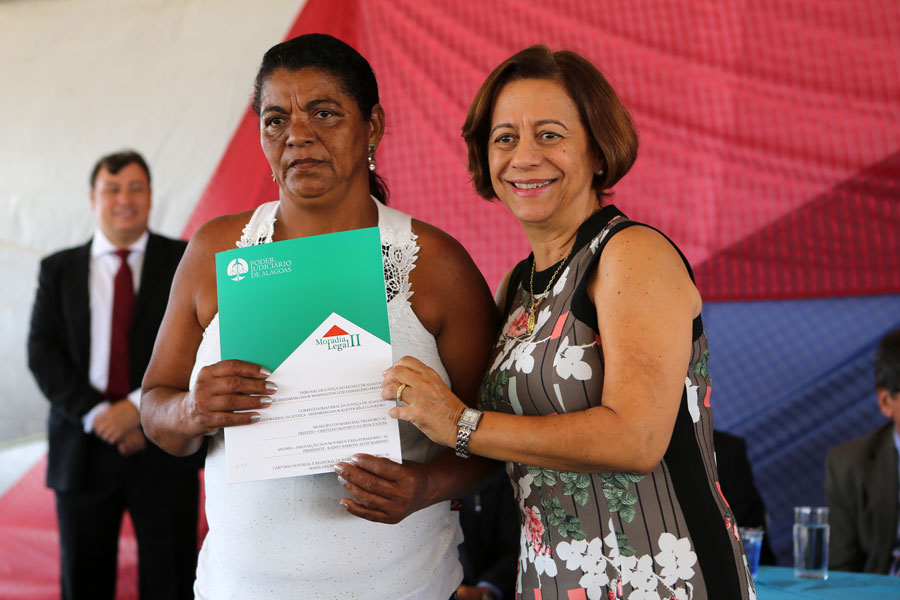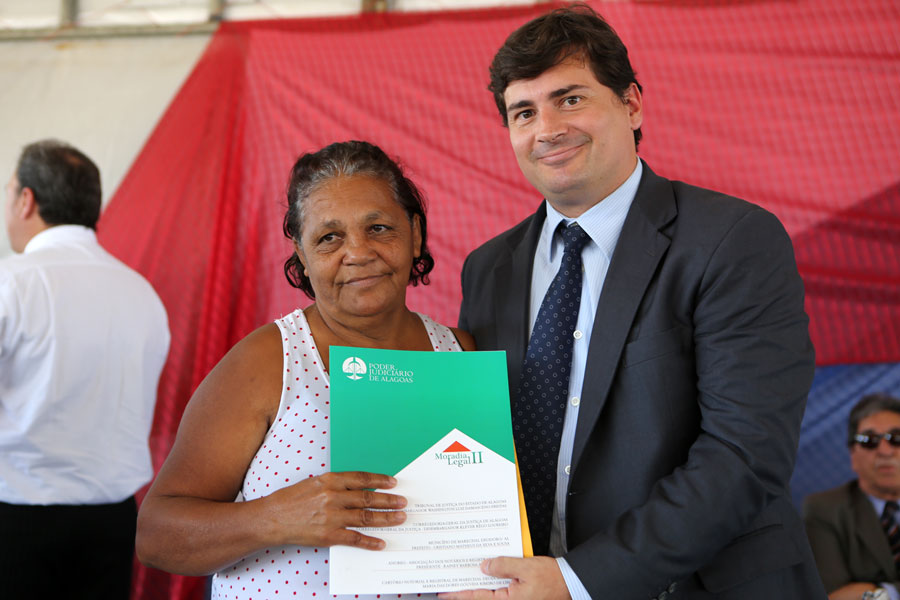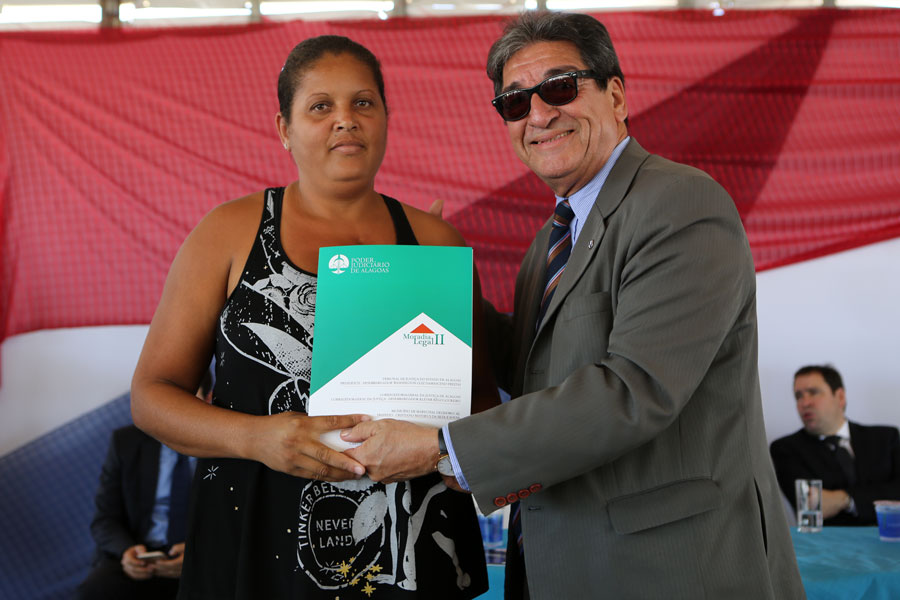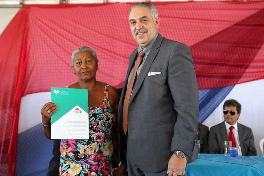 Também participaram da entrega o juiz coordenador do programa, Carlos Cavalcanti, que representou o corregedor Klever Rêgo Loureiro; o juiz Henrique Gomes de Barros, que também é membro da comissão do Moradia Legal; o diretor geral do TJ, Tiago Calheiros Malta; o secretário especial da Presidência, Nilo Brandão Meireles; a presidente da Associação Alagoana dos Magistrados, Fátima Pirauá, entre outras autoridades.