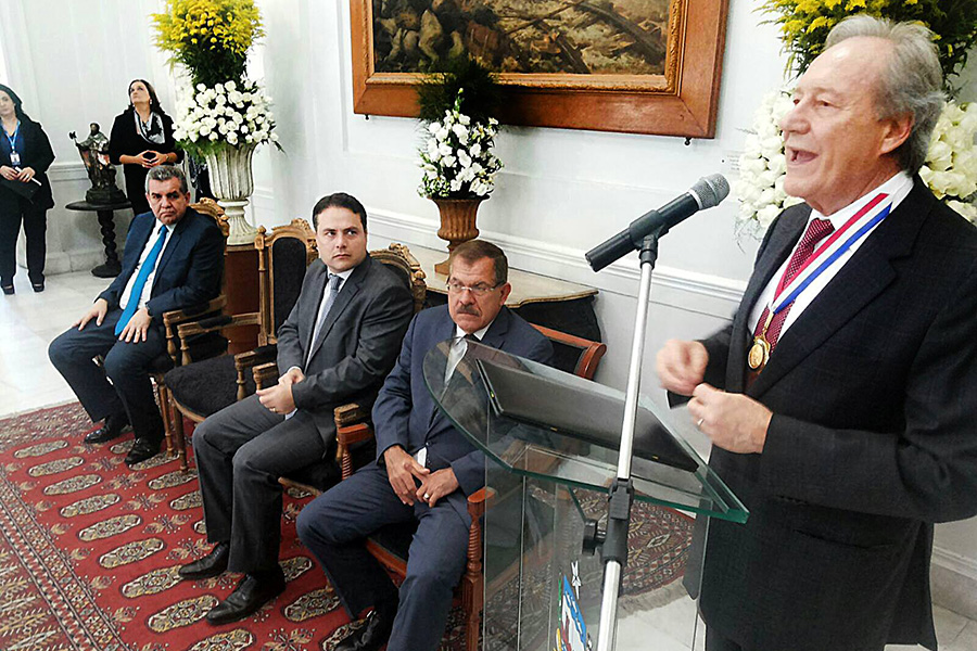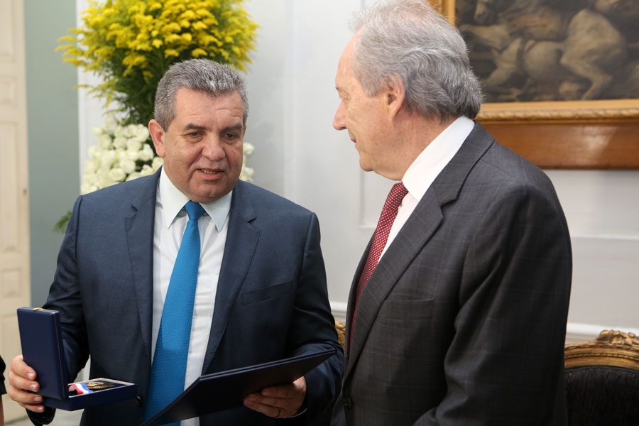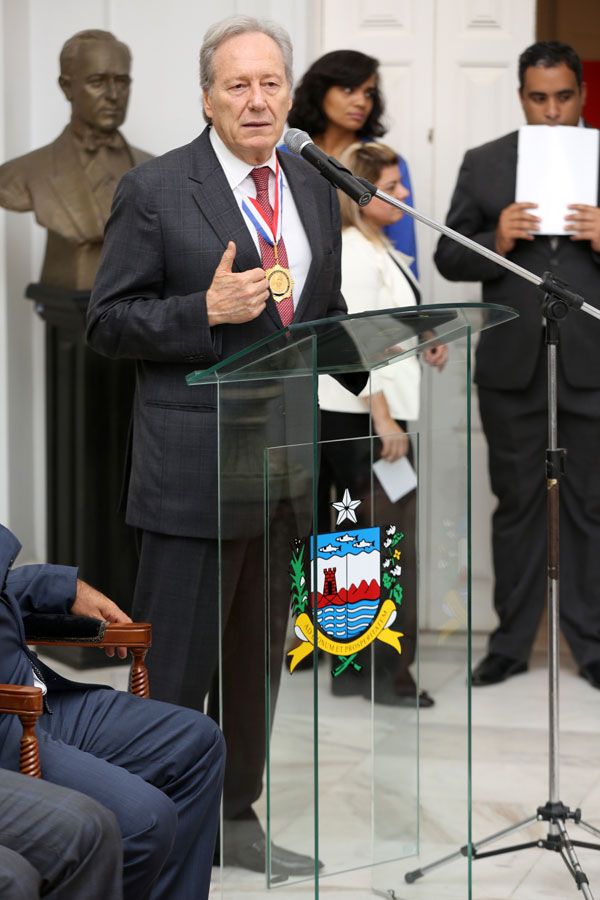 O presidente do Supremo Tribunal Federal (STF) e do Conselho Nacional de Justiça (CNJ), ministro Ricardo Lewandowski ratificou, nesta sexta-feira (02), sua emoção em ser homenageado pelo Poder Judiciário alagoano com as comendas Moura Castro , maior honraria da Justiça alagoana, e Edgar Valente de Lima . Além destas comendas, o ministro também foi agraciado com a medalha Dr. Pontes de Miranda, do Governo do Estado e com a medalha Raymundo Faoro, da Ordem dos Advogados (OAB) de Alagoas.