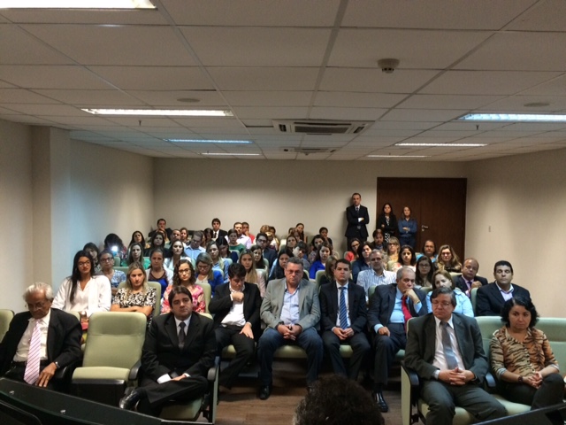 Magistrados e servidores assistem atentos às reflexões do palestrante