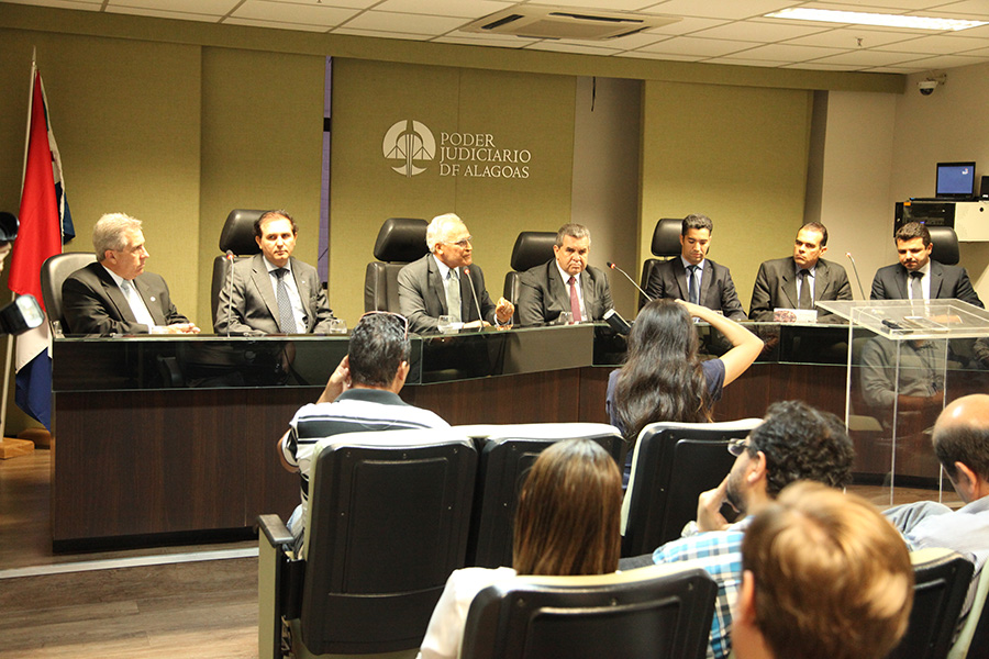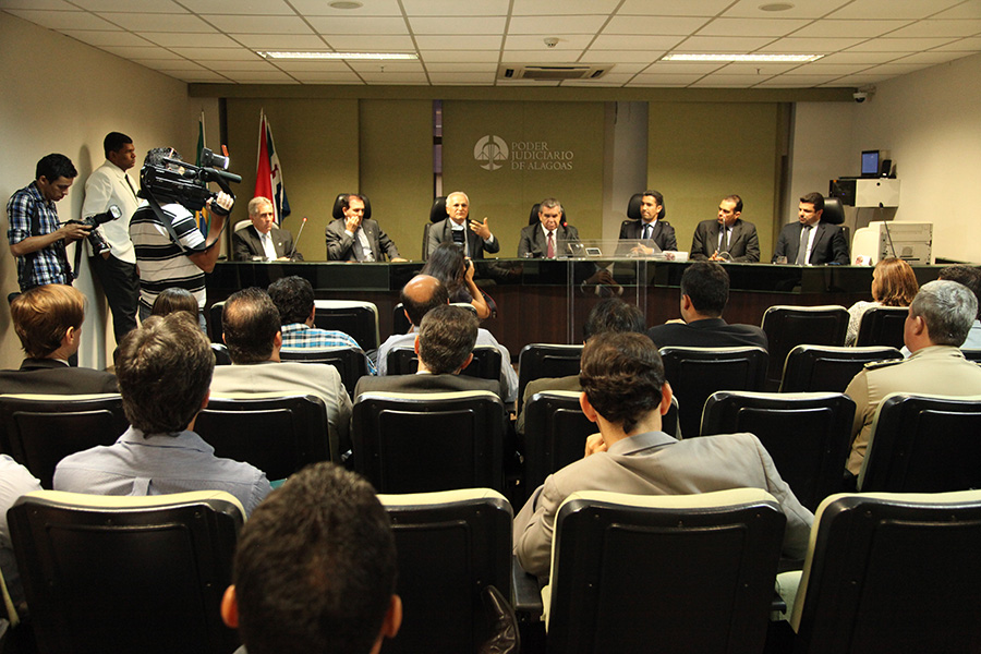 Representantes do Poder Judiciário, Governo de Alagoas e Prefeitura, em entrevista coletiva, nesta quinta Cristiano Soares