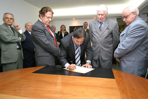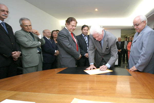 Desembargador James Magalhães no momento da assinatura do termo de posse