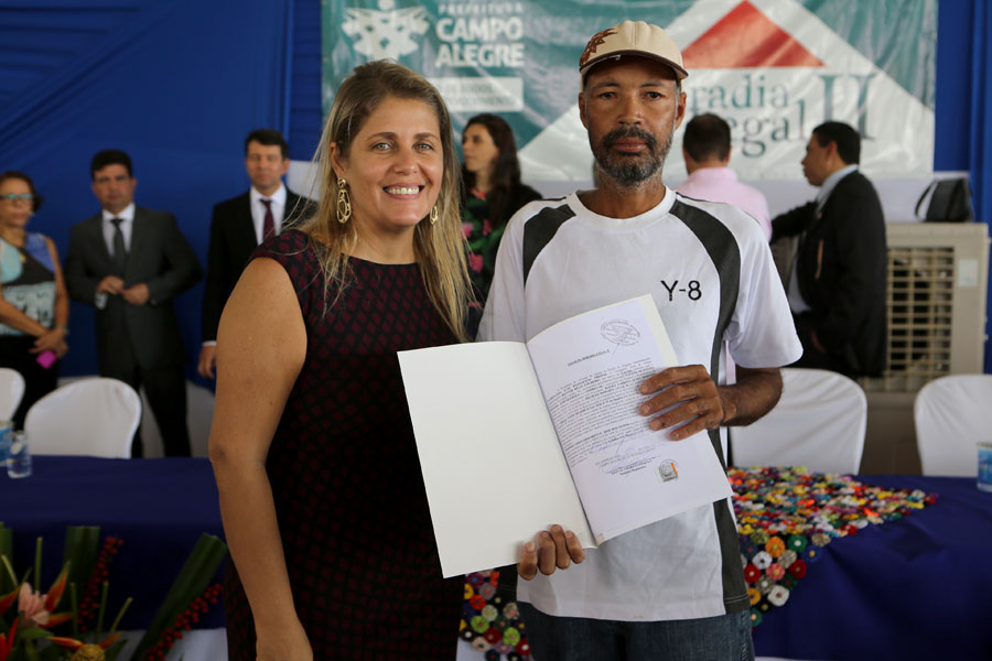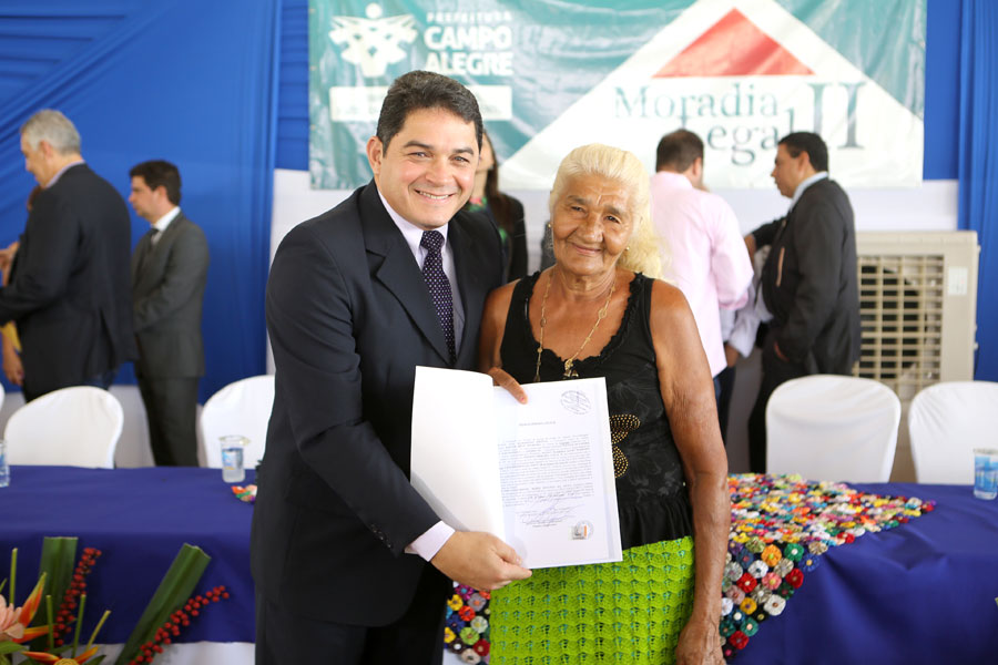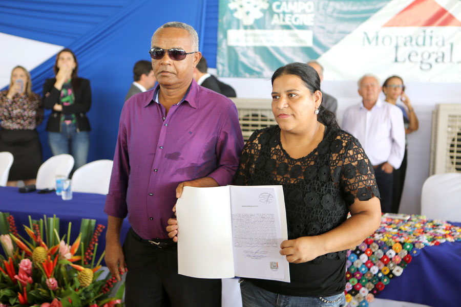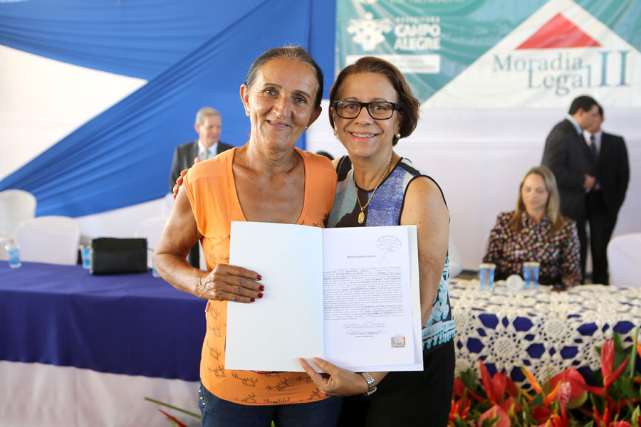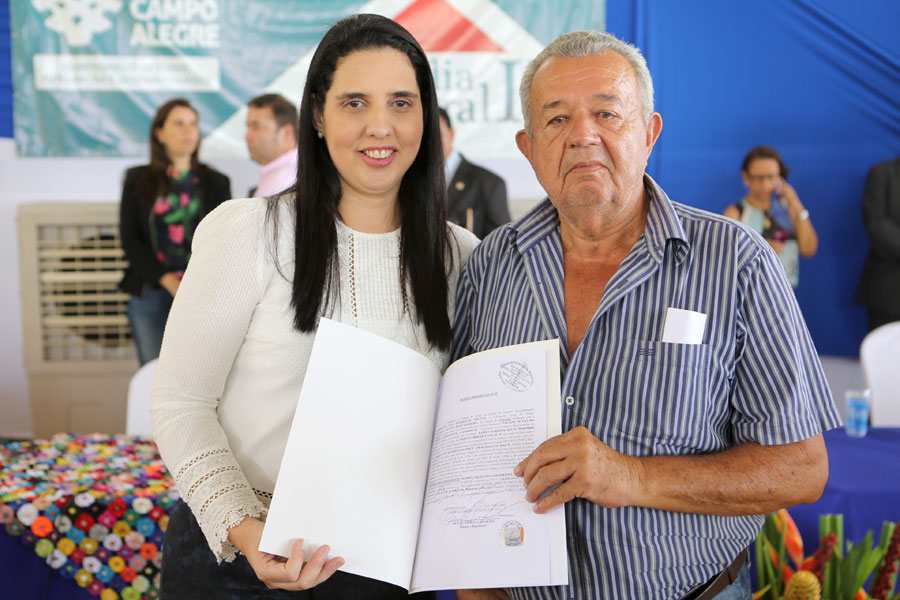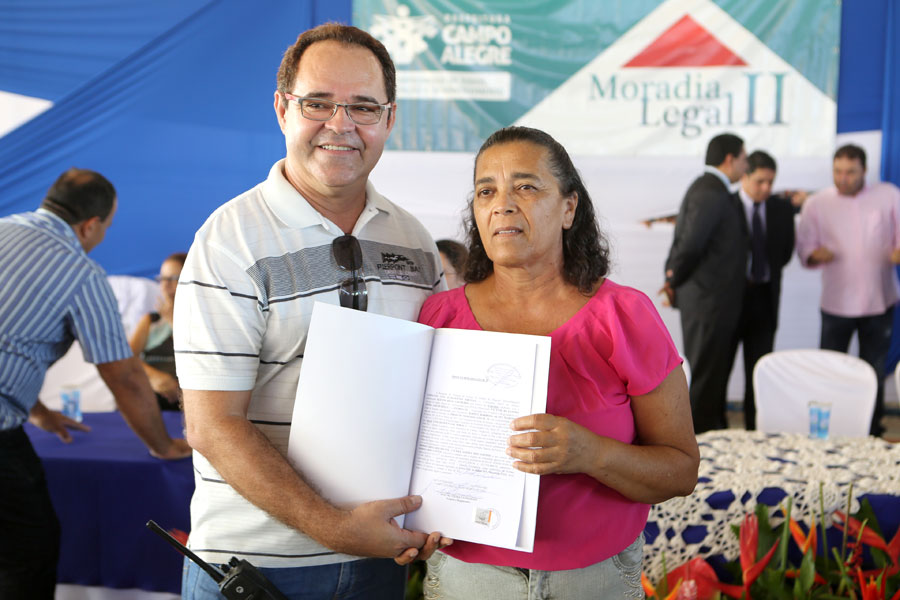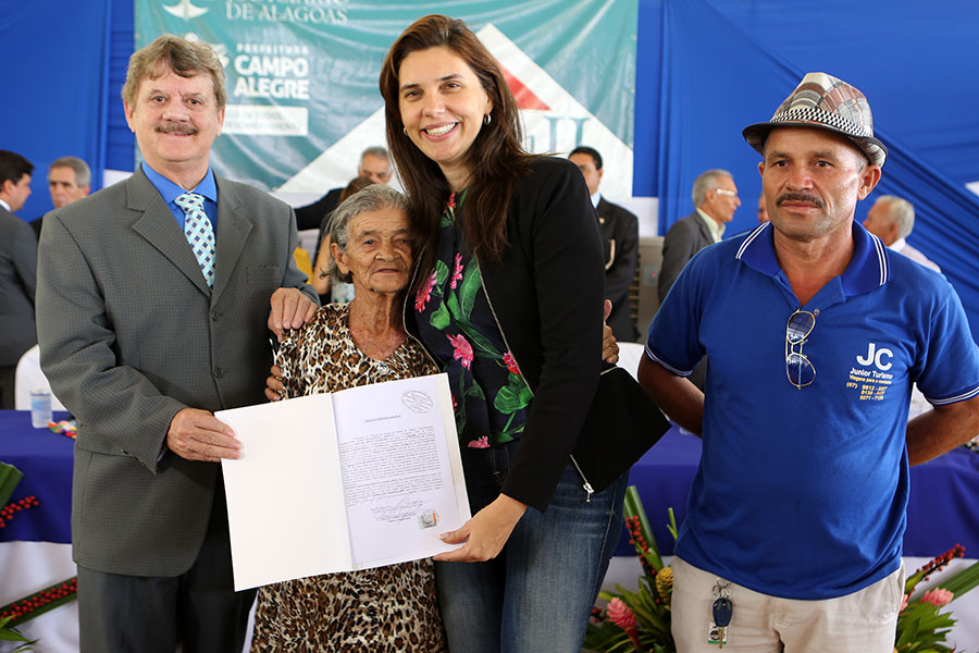 O sonho da aposentada Marina de Jesus, de 100 anos, em ter o documento que comprova a propriedade da casa onde mora há 30 anos, em Campo Alegre, foi concretizado nesta quinta-feira (10), quando ela recebeu o registro do imóvel, gratuitamente, pelo Moradia Legal II. Aproximadamente 950 títulos foram entregues no município, a moradores dos povoados Pimenteira e Chã de Imbira e também do Distrito de Luziápolis.