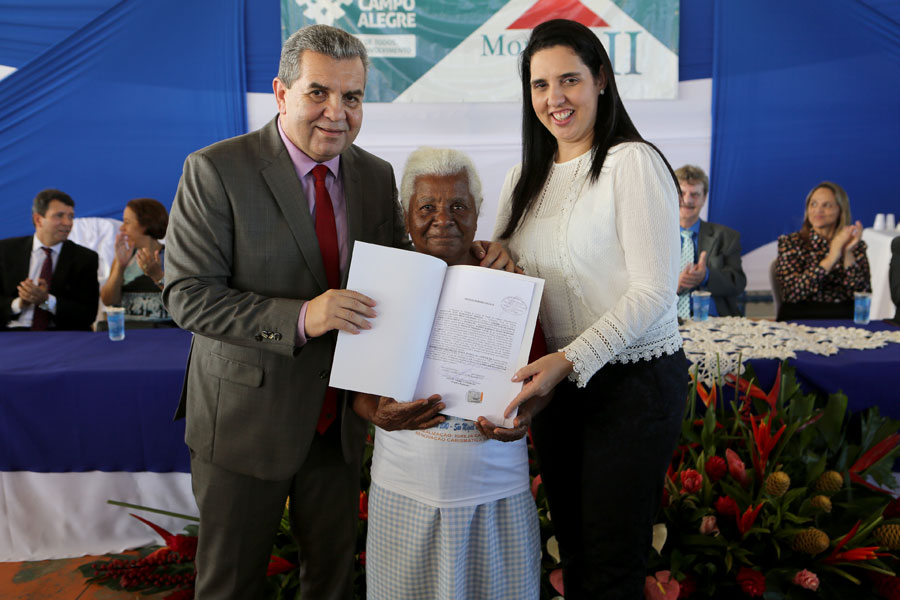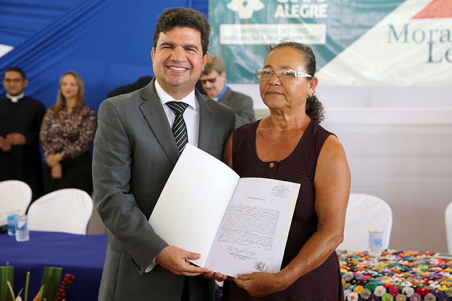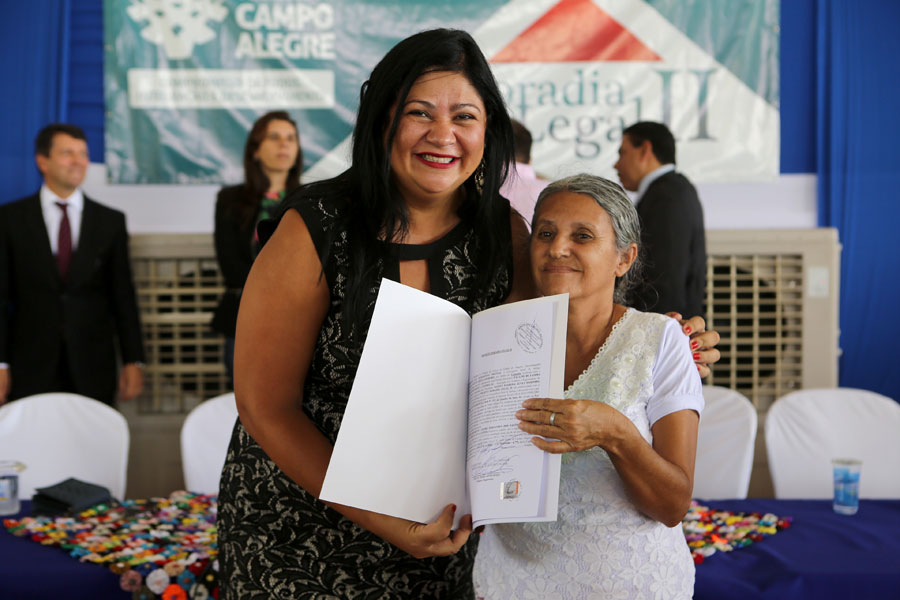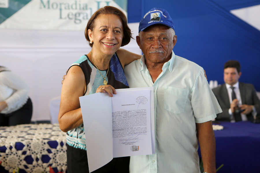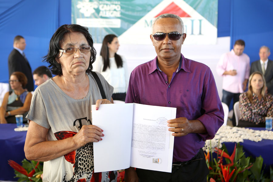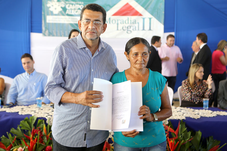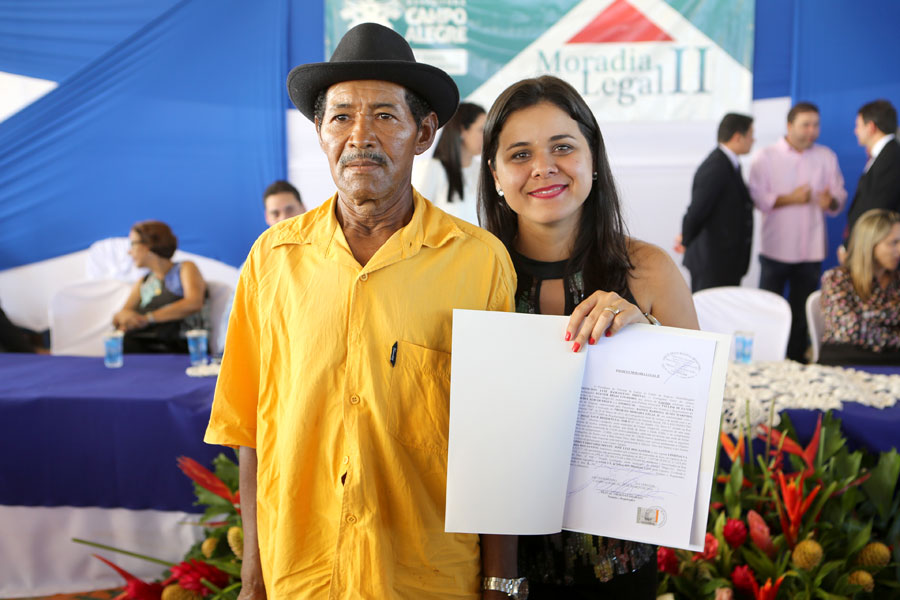 O sonho da aposentada Marina de Jesus, de 100 anos, em ter o documento que comprova a propriedade da casa onde mora há 30 anos, em Campo Alegre, foi concretizado nesta quinta-feira (10), quando ela recebeu o registro do imóvel, gratuitamente, pelo Moradia Legal II. Aproximadamente 950 títulos foram entregues no município, a moradores dos povoados Pimenteira e Chã de Imbira e também do Distrito de Luziápolis.