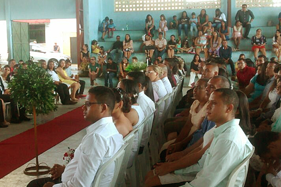 O Tribunal de Justiça de Alagoas (TJ/AL), por meio do projeto Justiça Itinerante, realizou, nessa quinta-feira (31), o casamento de 57 casais, no município de Rio Largo. A cerimônia coletiva, solicitada pela igreja Assembleia de Deus, foi conduzida pelo juiz coordenador do projeto, André Gêda Peixoto Melo.