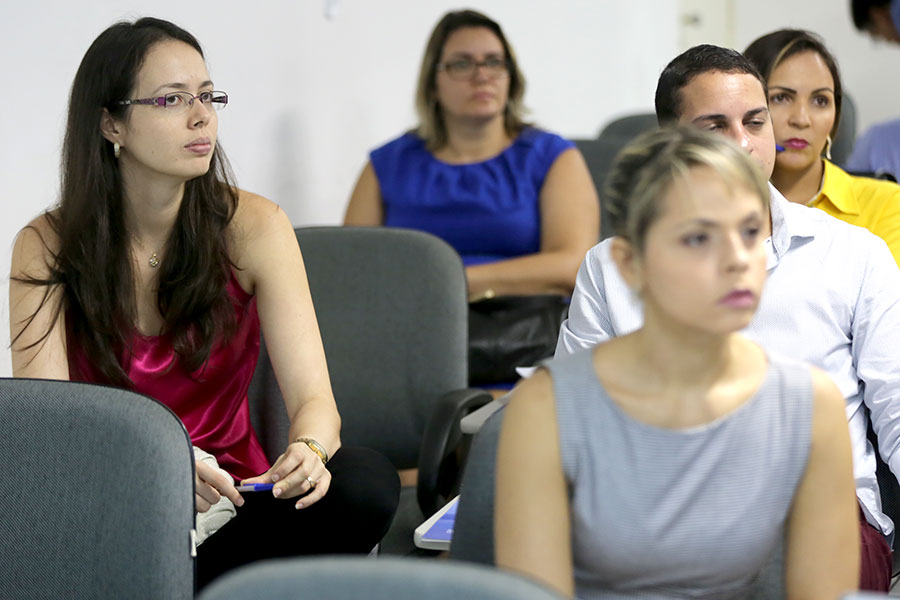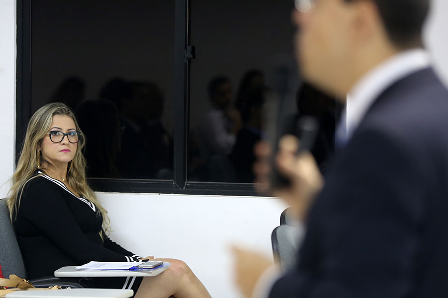 A juíza Emanuela Bianca de Oliveira Porangaba Barbosa, titular da 1ª Vara de São Miguel dos Campos, também participou do primeiro dia e destacou a importância dos cursos oferecidos pela Esmal. “Estou gostando muito do palestrante, acho que ele tem um preparo muito bom e fala com muita propriedade, e a Escola sempre trazendo esses cursos porque se exige do magistrado uma constante atualização.”