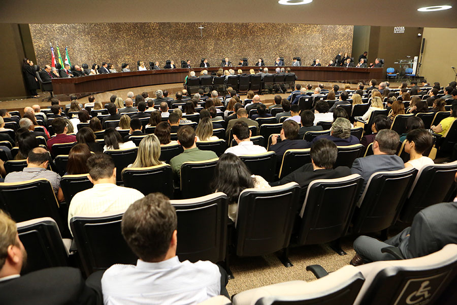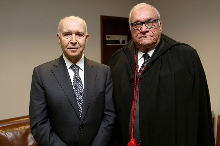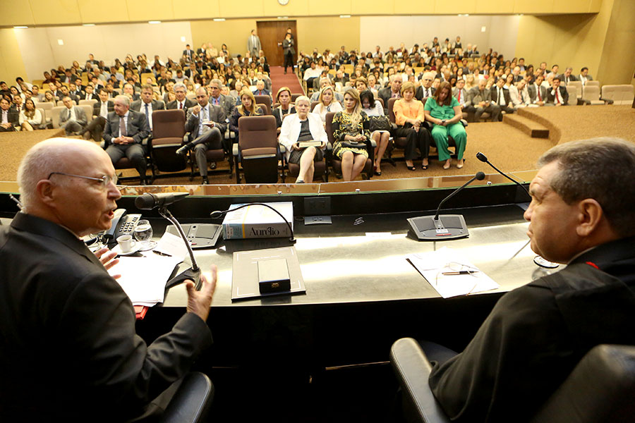 Canotilho e desembargador Washington Luiz durante evento no plenário do TJ. Foto: Caio Loureiro